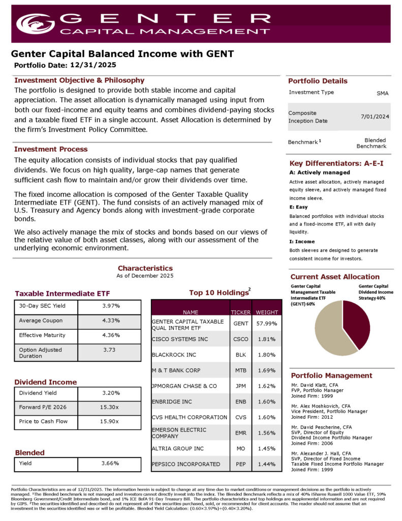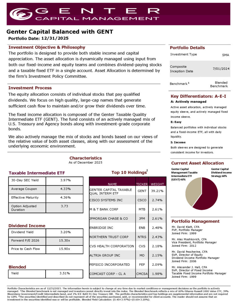 Genter Capital Management LLC is a registered investment adviser under the Securities and Exchange Commission pursuant to the Investment Advisors Act of 1940, as amended, doing business as Genter Capital Management. Beginning January 1, 2005, the firm has been redefined to include all the assets of Genter Advisors LLC.